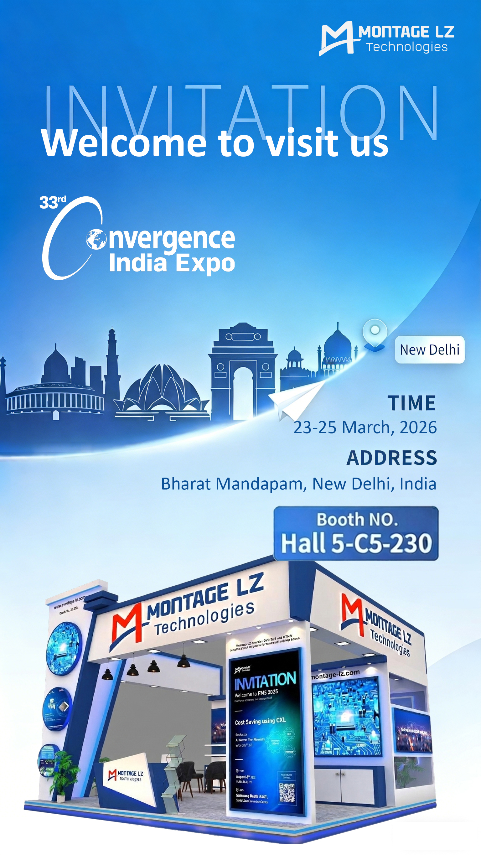 Montage LZ will attend the Convergence India Expo (CVG2026) held in New Delhi, India on March 23-25, 2026.