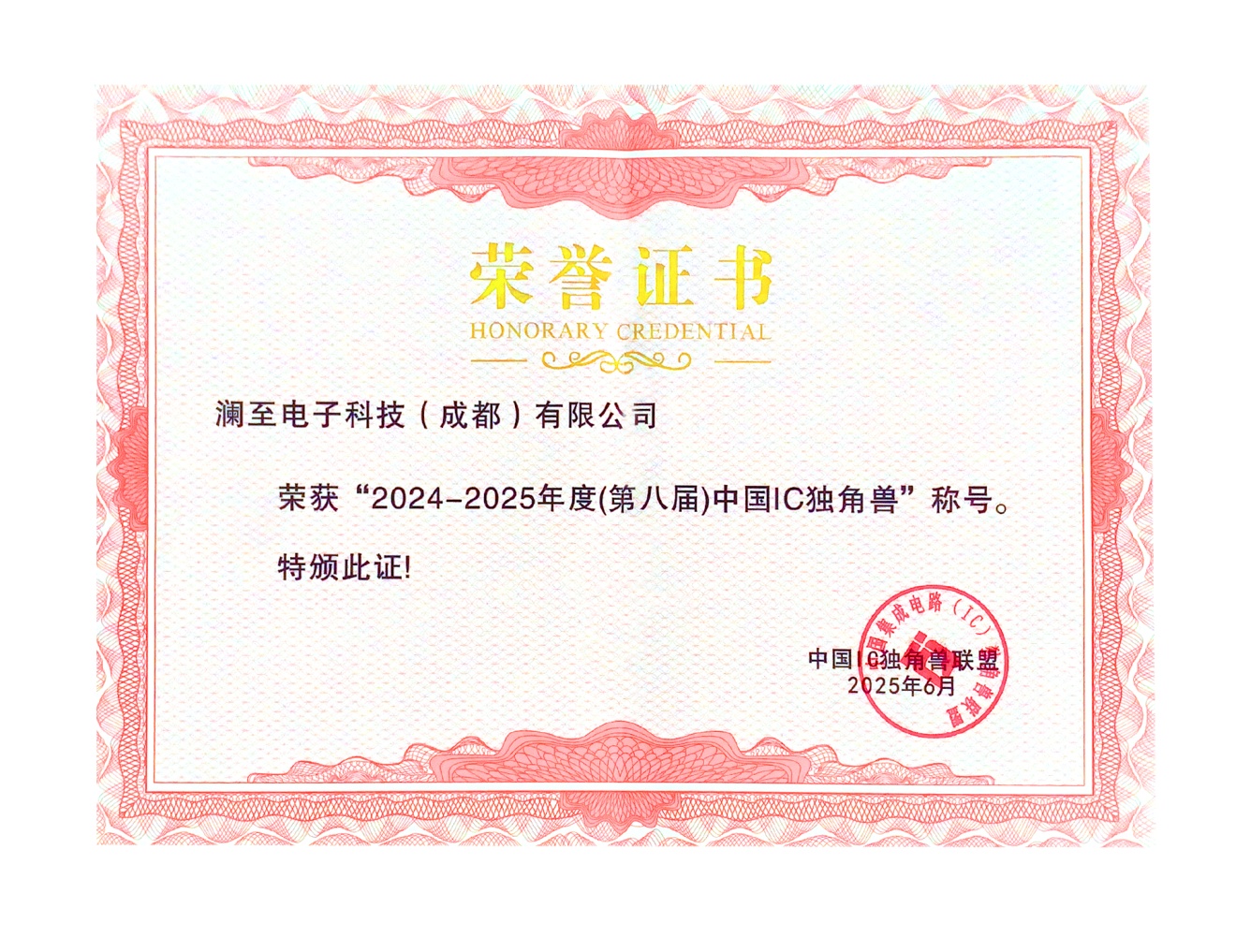 澜至电子科技蝉联2024-2025年度“中国IC独角兽”企业称号